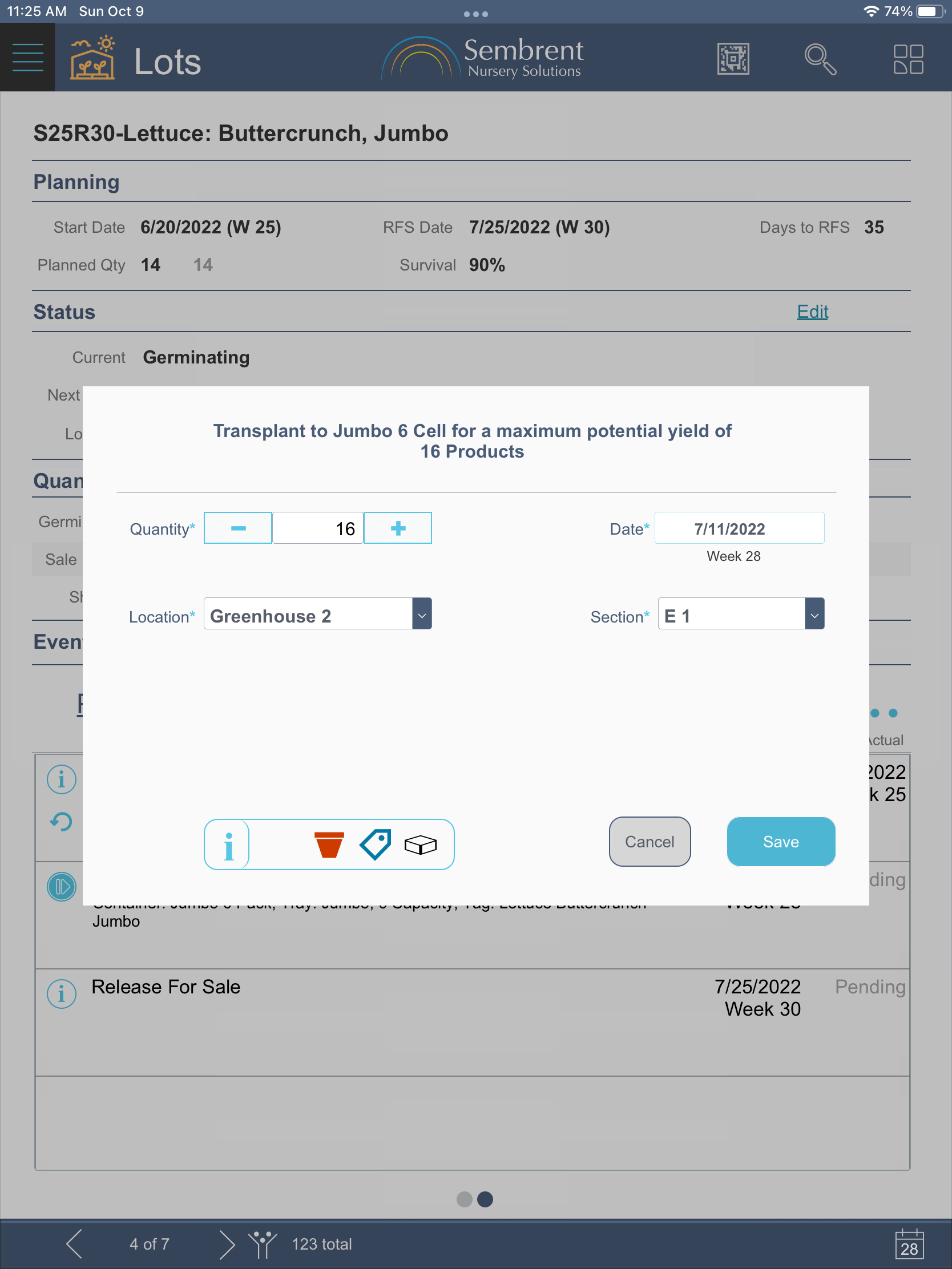 The core production-oriented feature of Sembrent allows users to record production events like sowing, transplanting and releasing a product for sale.