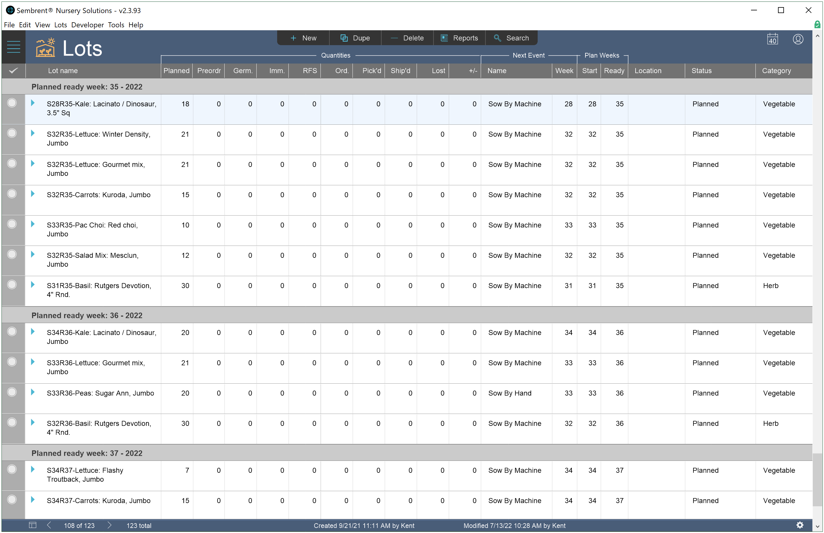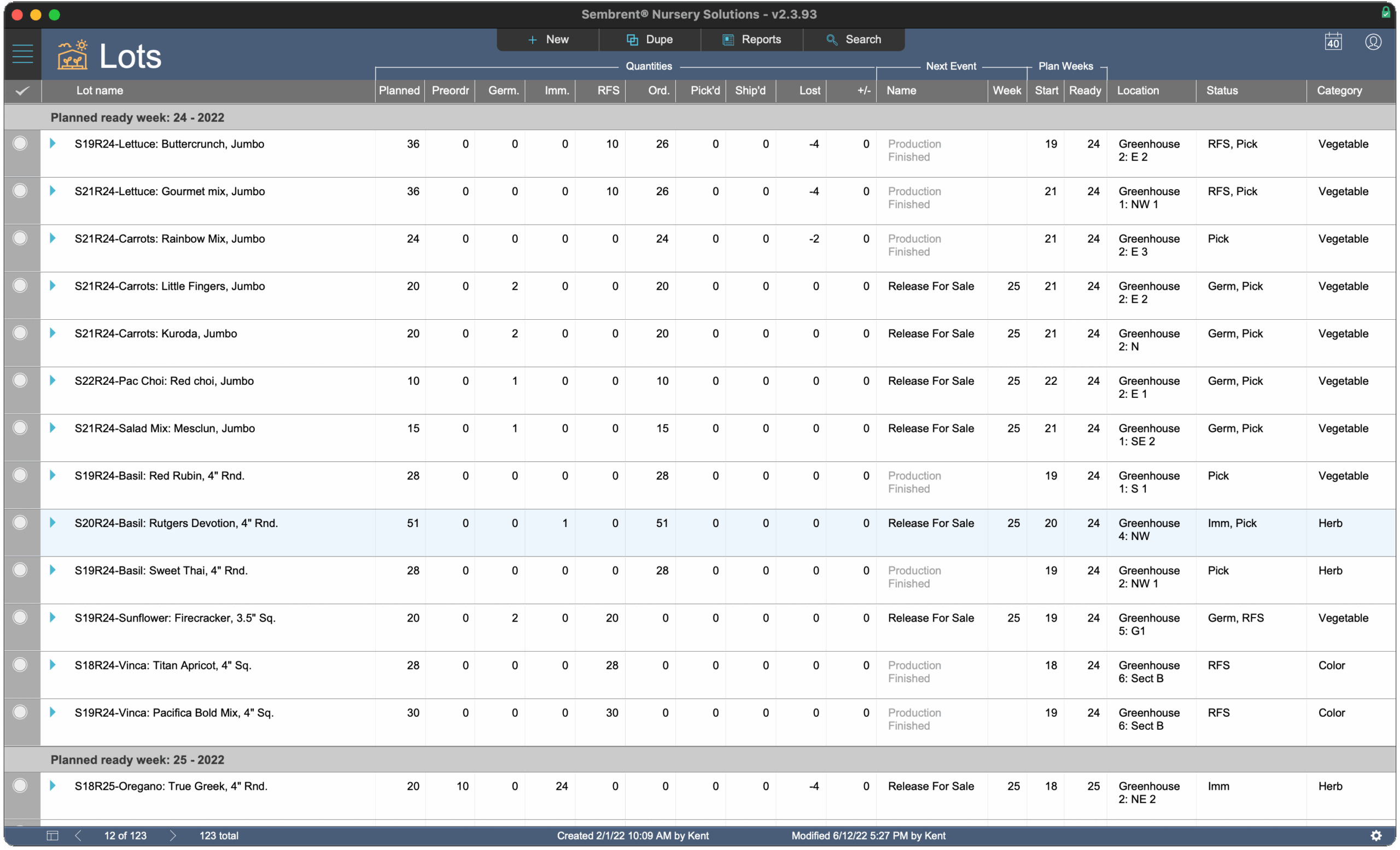 Sembrent tracks inventory levels of containers, seeds, tags & trays.