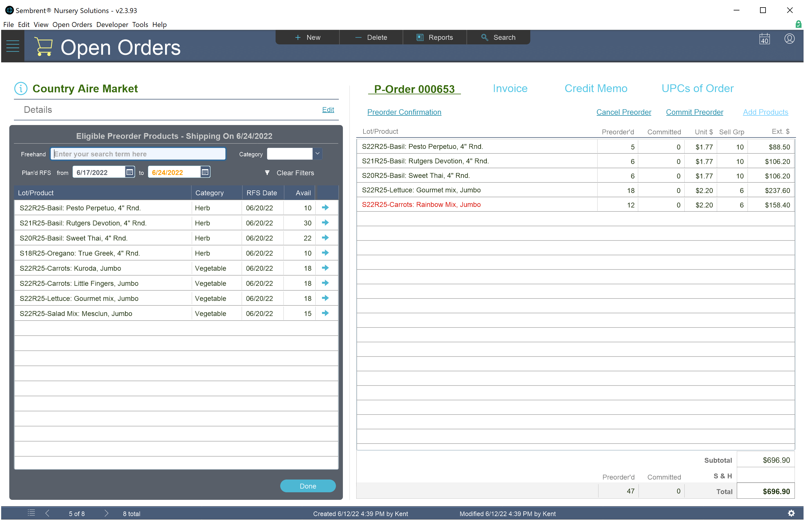 Adding or subtracting a product from an order will auto-update quantities and statuses of the lot it’s from.